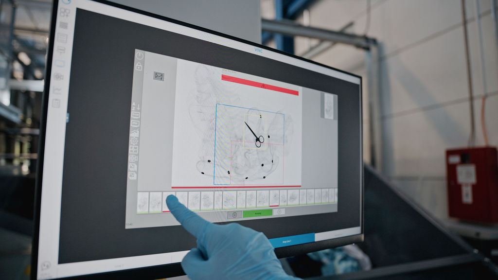 这套新解决方案的另一核心组件是Inwatec旗下的智能X光扫描仪ODIN。ODIN能自动检测出钢笔、剪刀、针头等异物,并将这些物品分拣至专用剔除箱,大幅提升员工作业安全性。此前,分拣工作完全依赖人工完成 —— 这是一项体力消耗大的流程,而如今该流程已变得更为安全、高效。目前,该系统每日可对9000件医疗类服装进行异物检测与自动分拣,让整个流程更快速、更安全、更可靠。
