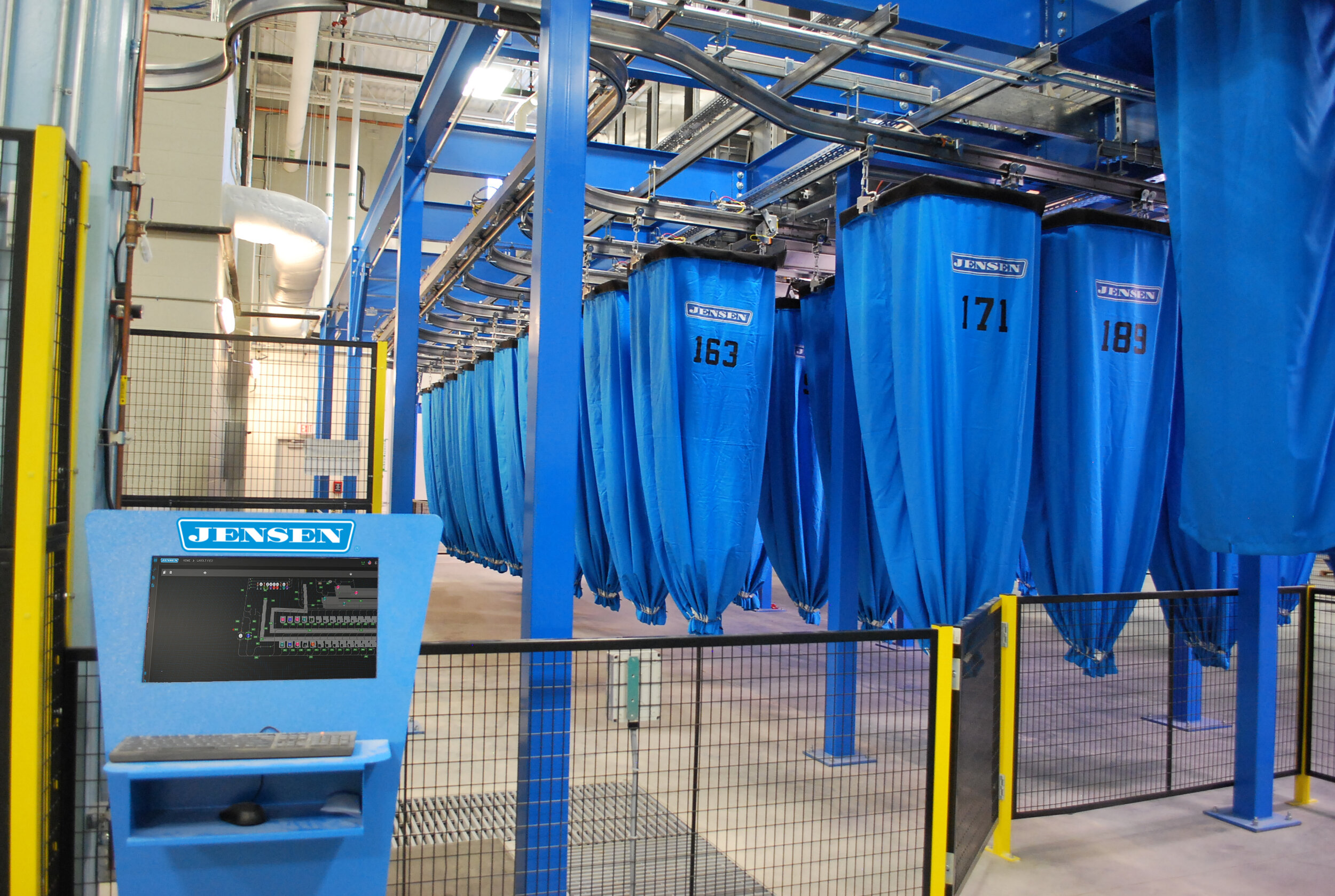 基础分拣和吊袋系统,旨在满足小型工业洗衣厂的需求。