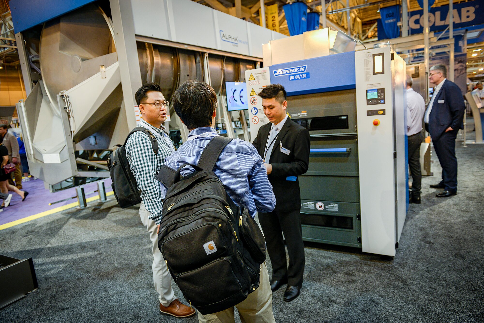 ジェンセンのイノベーションはランドリー産業を再定義し、大変革をもたらします。ジェンセンのブースに展示された様々な先端技術の中でも、その価値を再定義した2つのマシンがありました。1つ目は、エネルギーと水を内部で再利用する低生産コスト汎用ソリューションALPHA TW5連続洗濯機です。内部ドラムにジェンセンの革新的かつ信頼度の高いアルキメデス螺旋を採用することで安定的に最高品質の洗濯性能を提供します。2つ目は、コストと機能性の最適なバランスを持つソリューションALPHA T5 タオルフォルダです。タオルやその他の小さいアイテムについて、最高レベルのたたみ性能、積み性能を発揮し、確実に市場の要求に応えています。