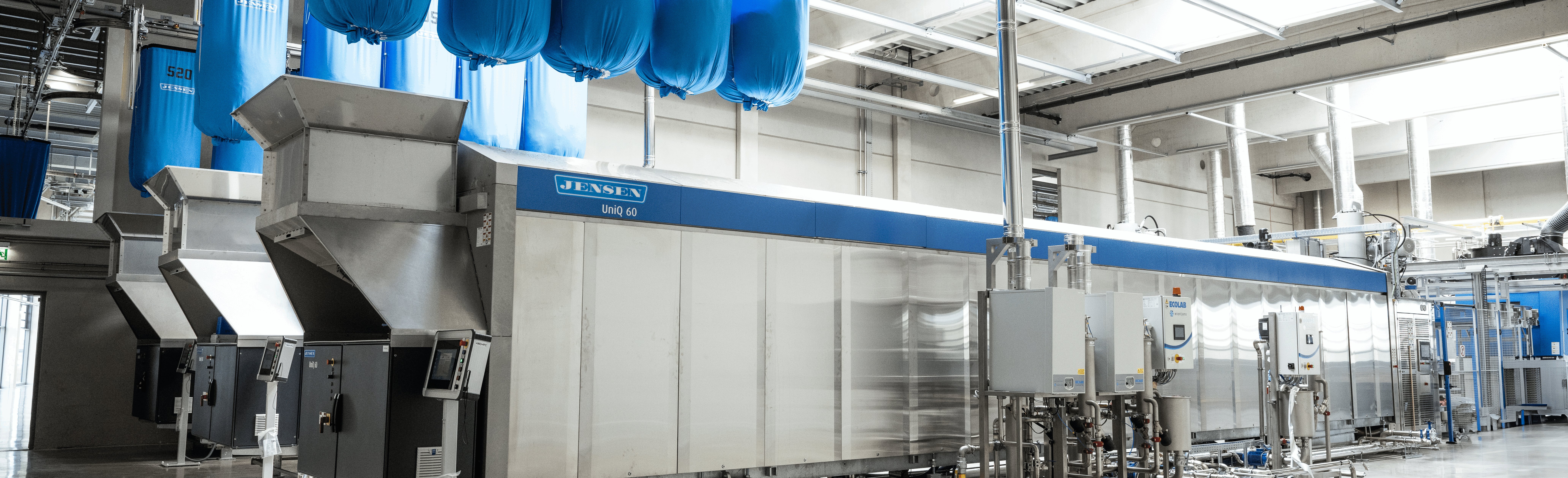 We cover all washroom operations: soiled linen handling and sorting systems, loading devices, tunnel washers, washer extractors, presses, centrifugal extractors, dryers, clean linen handling and sorting systems.
